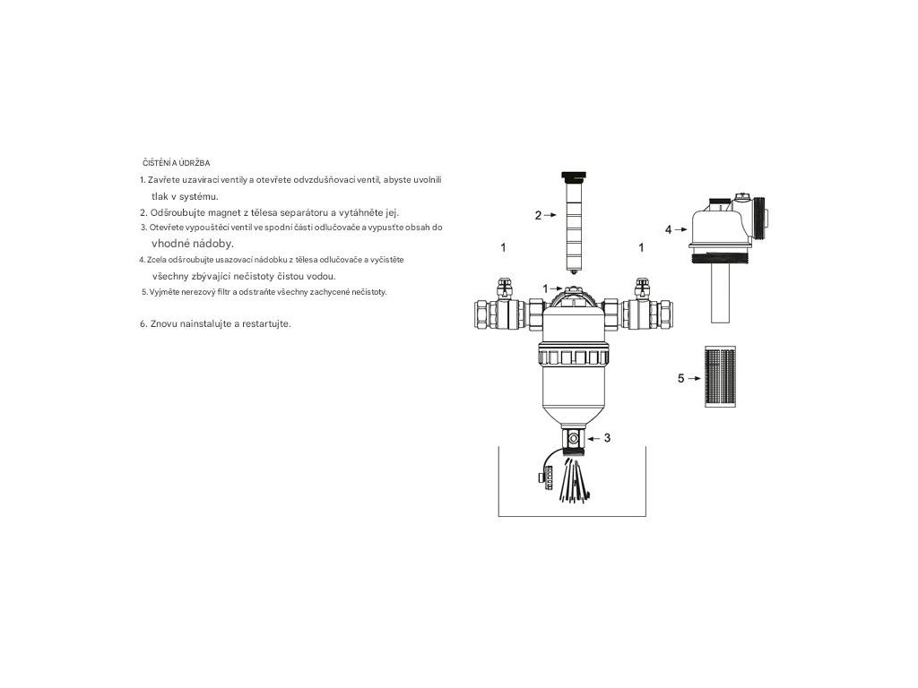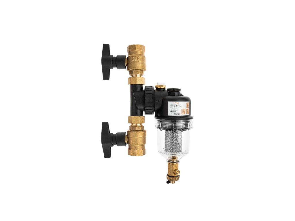 Filtr je vybaven silným neodymovým magnetem a dvouvrstvou nerezovou filtrační vložkou, která zajišťuje vysokou účinnost separace. Transparentní nádoba umožňuje vizuální kontrolu znečištění a spodní vypouštěcí ventil zajišťuje rychlé a čisté odkalování bez nutnosti demontáže.