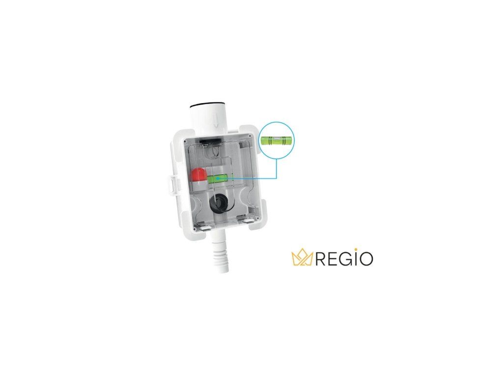 Sifon REGIO je vhodný zejména pro použití u klimatizací a systémů odvodu kondenzátu, kde je požadováno spolehlivé, kompaktní a vizuálně čisté řešení. Horní vstup je připraven pro napojení potrubí a spodní výstup umožňuje snadné připojení do odpadu.