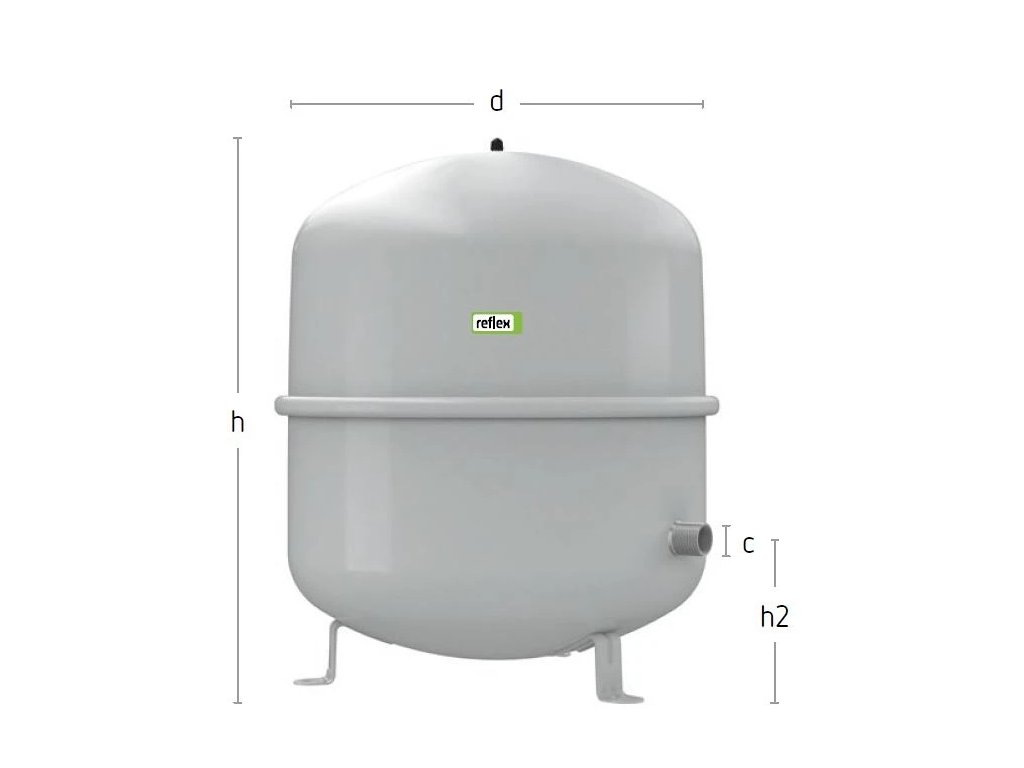 Tlaková expanzní nádoba s membránou pro uzavřené topné a chladicí soustavy. Nádoby v provedení podle DIN EN 13831. Povolení podle směrnice o tlakových zařízeních 2014/68/EU.