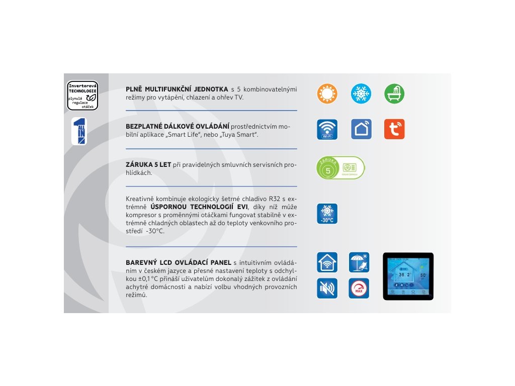 Používá ekologické chladivo R32, které je šetrné k životnímu prostředí a splňuje nejnovější evropské normy.